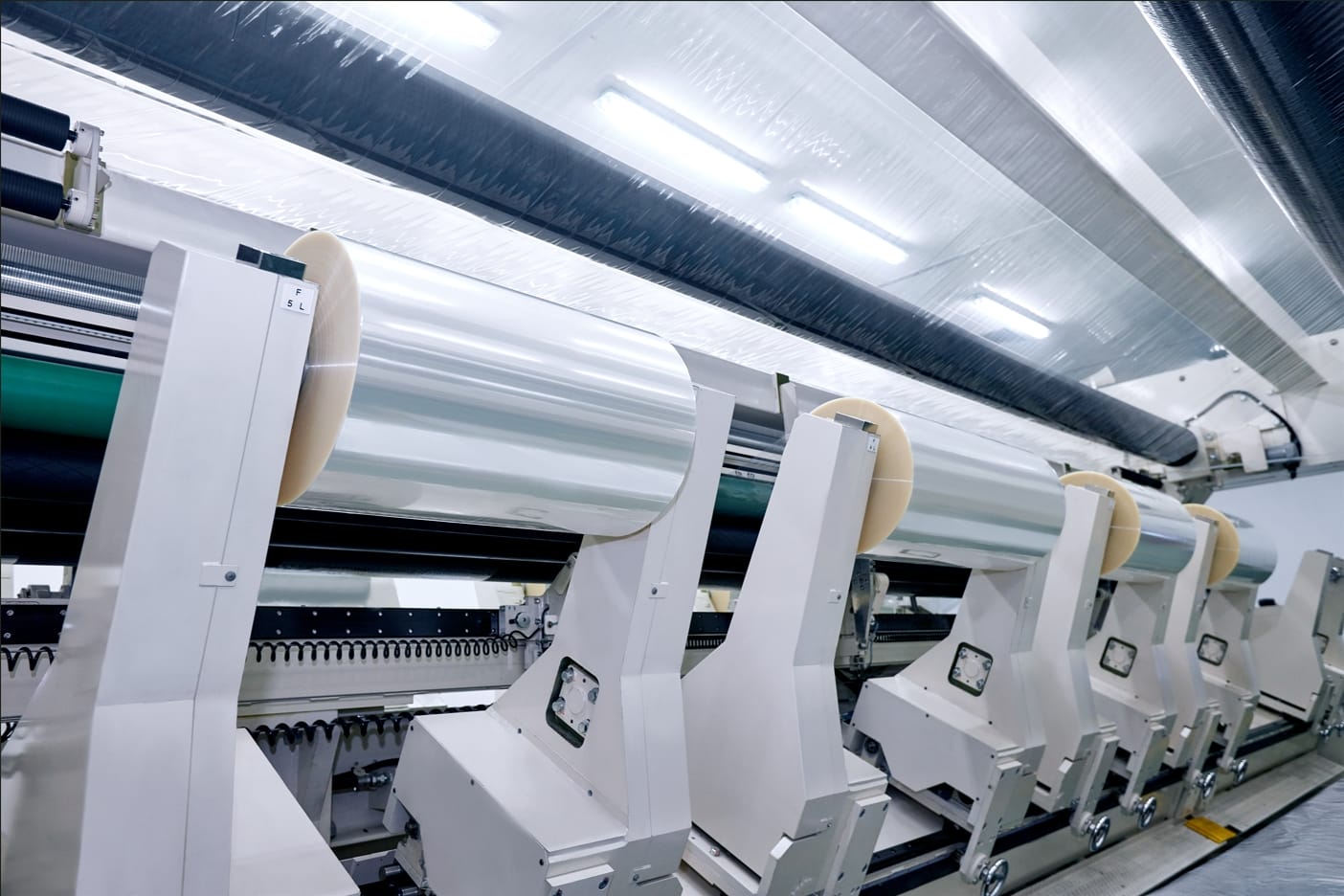 一臺(tái)約兩層樓高的巨型機(jī)器轟鳴著,源源不斷地“吐出”寬約8米、光滑平整的膜材,在燈光的映射下宛若平靜的河面,緩緩“流”過(guò)數(shù)十米長(zhǎng)的車間。